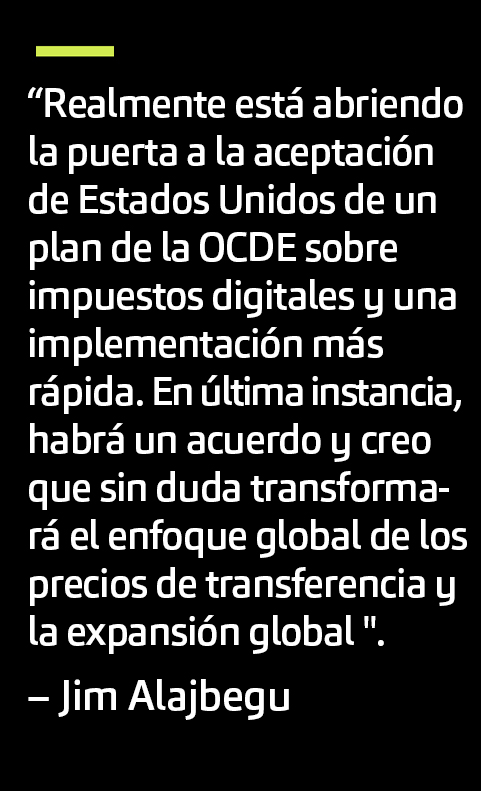 “En última instancia, habrá un acuerdo y la aceptación de Estados Unidos y eso transformará el enfoque global de los precios de transferencia y la expansión global”, dice.