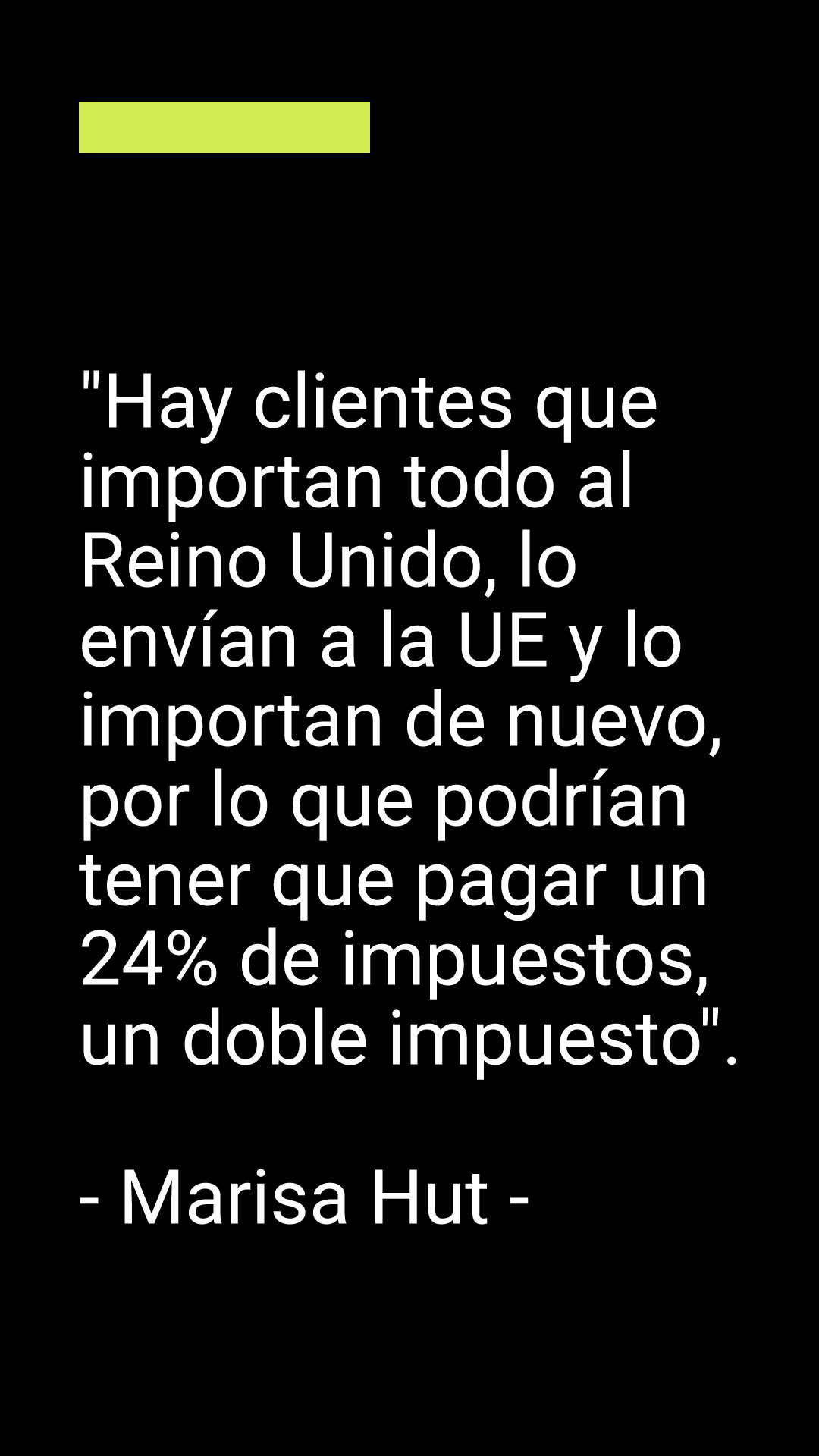 «Hay clientes que importan todo al Reino Unido, lo envían a la UE y lo importan de nuevo, por lo que podrían tener que pagar un 24% de impuestos, un doble impuesto», dice.