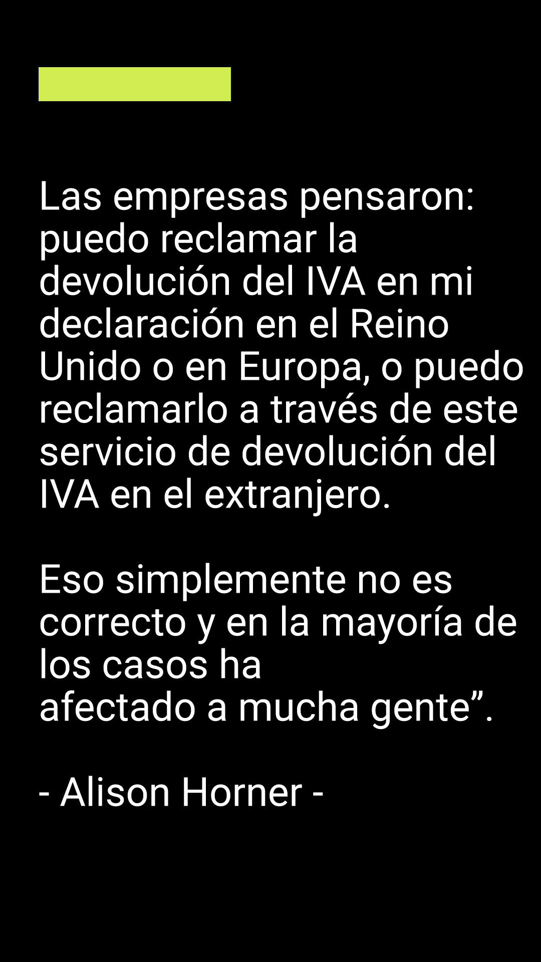 «Pero en todos los demás países tienen que registrarse para efectos del IVA y se encuentran con la situación que tienen miles de libras que solicitar en devolución pensando que pueden hacerlo, e incluyéndolo en su flujo de caja, cuando en realidad no pueden. Es un mensaje muy duro al final del primer año».