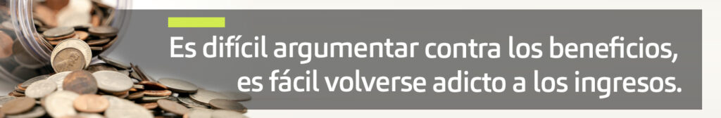 Sin embargo, una vez que se establece ese flujo de ingresos, los propios gobiernos pueden volverse adictos.