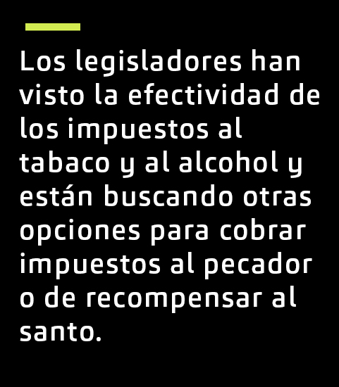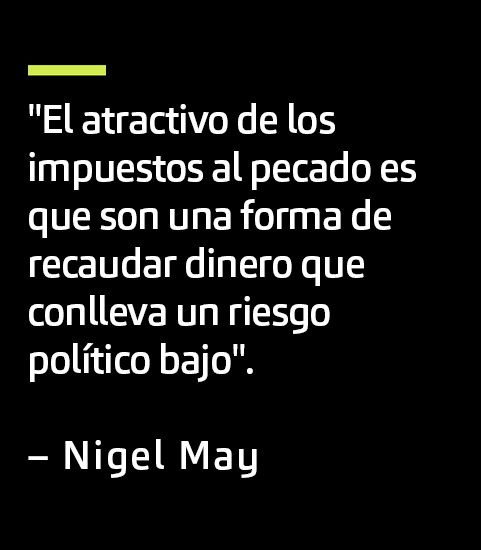 “Dentro de la esfera política, el atractivo de los impuestos al pecado es que son una forma de recaudar dinero que conlleva un bajo riesgo político. Puede verlo desde el punto de vista de los impuestos al tabaco, los impuestos al cannabis, los impuestos al alcohol; están tratando de cambiar comportamientos, pero también es una forma en que el gobierno puede recaudar ingresos sin los problemas políticos que acompañan a los impuestos de IVA o al impuesto a la renta».